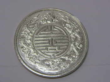 廣東省機鑄銀幣史 【購機試鑄制錢】 圖片是 1905年廣東省為祝賀慈禧太后六十大壽而鑄(壽字雙龍壹兩試鑄樣幣) 廣東省機鑄銀幣史 我國在咸豐、同治到光緒初年時,雖已有自鑄之銀幣,但只是少數地區鑄造,且這些地區,除上海外,不是遠在邊疆(西藏),就是貧瘠落後省份(貴州)或沿海地帶(福建、台灣), 而且鑄額有限,即使在其本地亦難以十分通行,更別說流通到內地了。當時外國銀元早已充斥,國內流通的大都是西班牙本洋,墨銀,有識之士,莫不引以為憂,因此當林則徐任兩廣總督時,就奏請朝廷自鑄銀幣,以便利民用。可是那時朝廷排外風氣盛行,硃批稱銀幣係夷制,禁之不暇,怎能仿效?此議遂遭作罷。 【購機試鑄制錢】 光緒十二年(西元一八八六年)間,當時的兩廣總督張之洞,有感於廣東省境內所流通的盡是外國銀元,甚至廣西、福建、浙江、湖北、河南等所有通商口岸,以及湖南、四川及西藏等地亦無不通行,實在是中國的一大恥辱;而且外國銀元每枚重七錢二分,成色千分之九○○,實銀不過六錢四分八,但在兌換中國元寶銀錠上,卻可兌到八錢左右。張之洞認為這是一個無底洞,若不速謀補救,那麼中國的元寶銀錠勢必外流,在財政上的損失將無法估計。 在這裡,我們先將中國元寶銀錠之成色計算分析如下: 當時中國通行的所謂「紋銀」,其成色為千分之九三五.三四七,一個五十兩重的二四寶銀錠,作價為紋銀五十二.四兩,二五寶作價紋銀五十二.五兩,二六寶作價五十二.六兩。 如此,我們便可依據紋銀的成色來推算各種元寶銀錠之成色: 二四寶成色=52.4兩×935.347﹪÷50兩=980.244﹪ 二五寶成色=52.5兩×935.347﹪÷50兩=982.114﹪ 二六寶成色=52.6兩×935.347﹪÷50兩=983.985﹪ 在此,我們假設一枚成色千分之九○○,重七錢二的外國銀元,可易得二五寶的銀錠八錢計算,八錢的二五寶(成色千分之九八二.一一四)純銀實重七.八五七錢,而外國銀元純銀不過六.四八錢,如此每易一枚外國銀元,國人將損失純銀一.三七七錢。一個五十兩重的二五寶,將可兌換外國銀元為:(50兩×982.144﹪)÷(0.72兩×900﹪)=75.78枚,每兌一枚外國銀幣損失純銀一.三七七錢,如此每兌一個五十兩重的二五寶銀錠,就要損失一○四.三四九錢,亦即為一○.四三五兩的純銀。這種在兌換上的無形損失,確是不容忽視。 張之洞是有心鑄造銀幣,以謀抵制外國銀元的氾濫,但因銀幣在中國未曾鑄造,林則徐過去主張自鑄銀幣,受到朝廷的申斥,張之洞雖是朝廷的封疆大臣,也是不敢貿然行事。因此在光緒十三年正月二十九日,在他上書朝廷的「廣東省購辦機器,試鑄制錢摺」主張在廣州規劃設局,因為廣州是南方中外通商輻輳之區;若有成效,於四川瀘州再設一局,因瀘洲為四川、雲南及貴州的交通中心,且可利用四川、雲南的銅及貴州所產的鉛為鑄錢原料。如此可以整齊圜法,尚可開發國內的礦產。 在此之前,張之洞曾打電報到倫敦,給當時的駐英使臣劉瑞芬:「……英國有鑄銅錢、銀錢機器,望查詢速示……」,由此可以清楚看出,張之洞擬在廣州規劃設局的目的,不只是要鑄制錢,更有心試鑄銀幣。於是他在這份奏摺的附片上說.