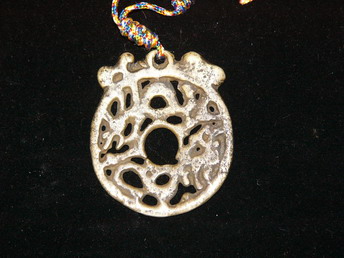 | 一、視覺方面:從天鐵自然磨損程度可以判斷年代 的久遠,如果常年佩戴,與衣服皮膚磨擦,必 然散發出燦爛的光澤與色調。 二、觸覺方面:用手觸摸老舊天鐵,很溫潤且有自 然舒服的觸覺感。另有一說用舌頭舔天鐵、有 些許甜甘味,這種測試方法網主並不鼓勵。 三、聽覺方面:將老舊天鐵平放在手心上,從半公 尺(50公尺)高往下丟在水泥或瓷磚地板上, 所發出的聲響深沉,好比鉛碰觸地面的聲音, 與近代的銅鐵器所發出聲音鏗鏘作響不同。尤 其扁平掛飾所發出的聲響差異更明顯辨別容易。 天鐵的形狀、主題及完整性是收藏者選擇的基本 要件。如果能再具備燦爛的光澤與色調,溫潤舒服 的觸覺感,以及碰觸地面發出深沉的聲音,則是一 塊難得完美的天鐵。 藏族修行者選擇天鐵,似乎另有更高明且神奇的 見解。一塊看似不起眼的天鐵,也可帶來極大的幸 運和吉兆,這是凡人難於體會的。