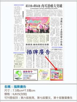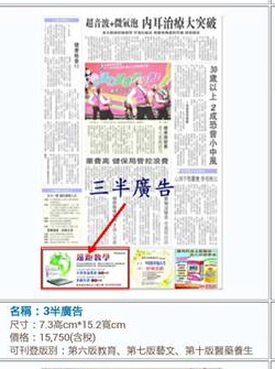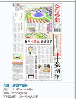 特殊尺寸廣告:廣編稿350字加圖一張10,000,